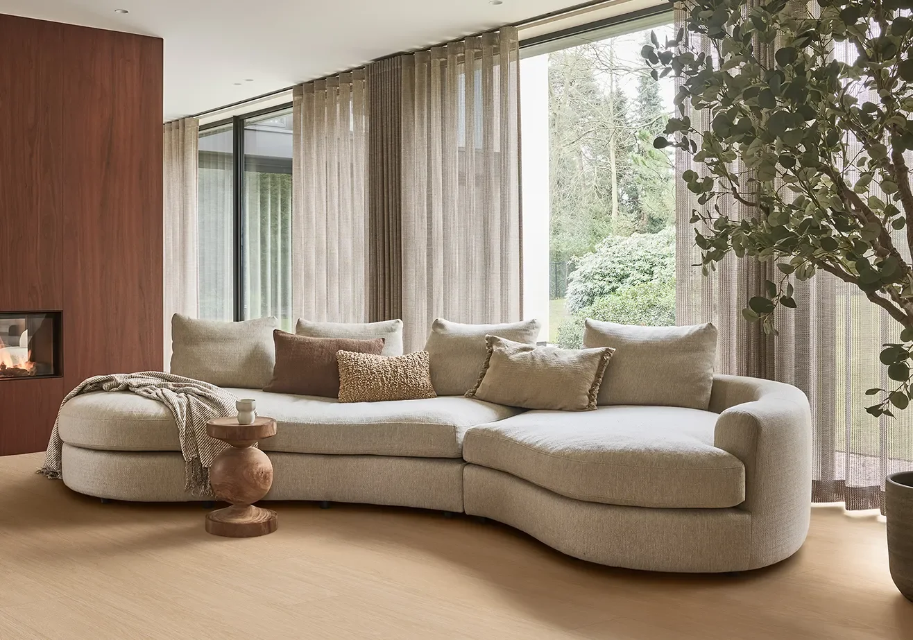 De juiste materialen maken een ruimte warm en uitnodigend. Een pvc-vloer die eruitziet als hout, maar eenvoudig te onderhouden is. Of Duette® Shades die niet alleen licht reguleren, maar ook energie besparen. Zo ontstaat een interieur waarin schoonheid en functie elkaar versterken. De materialen die je kiest, vertellen iets over je manier van leven: bewust, stijlvol en met aandacht voor kwaliteit.